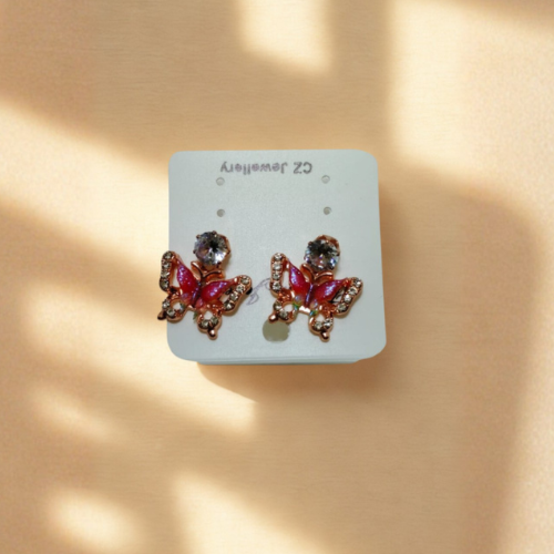 Add a touch of charm to your everyday look with these elegant butterfly stud earrings. Designed with vibrant red enamel wings and sparkling crystal accents, they sit on a polished gold-tone base that catches the light beautifully. Lightweight and comfortable, these studs are perfect for daily wear, casual outings, or gifting someone special.
