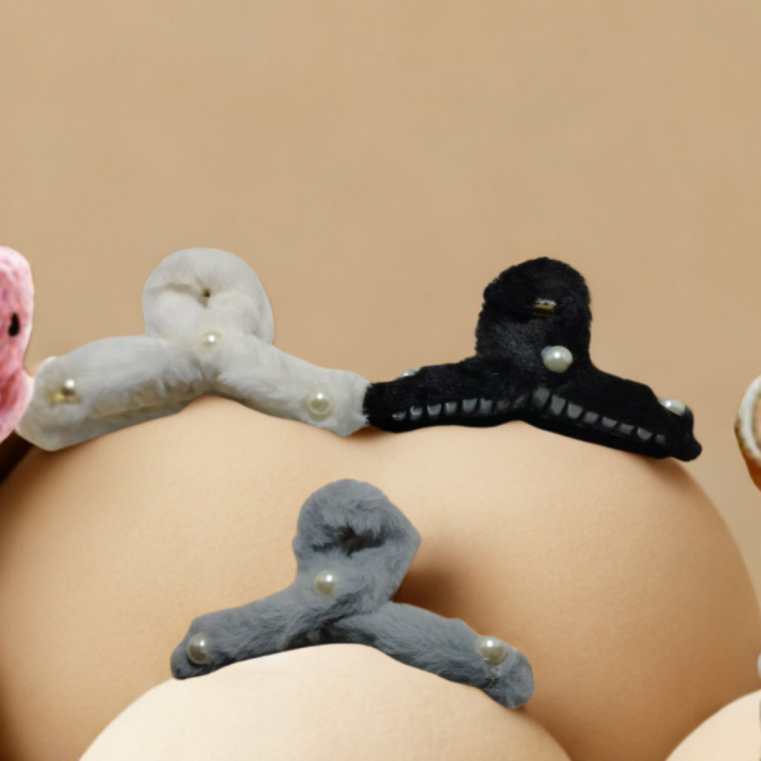 Soft, sculptural hair clips crafted in plush fabric and finished with delicate pearl accents. Each piece balances playful texture with minimalist elegance, making them perfect for everyday styling or a subtle statement look.